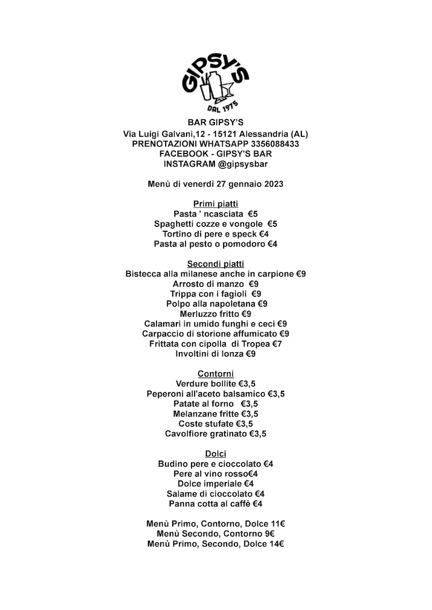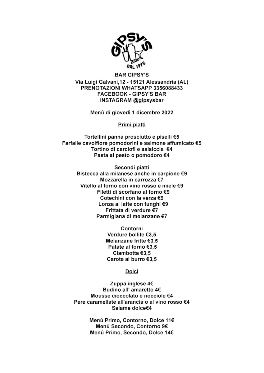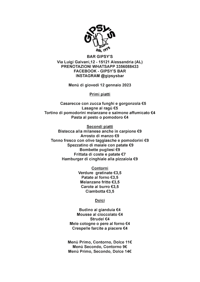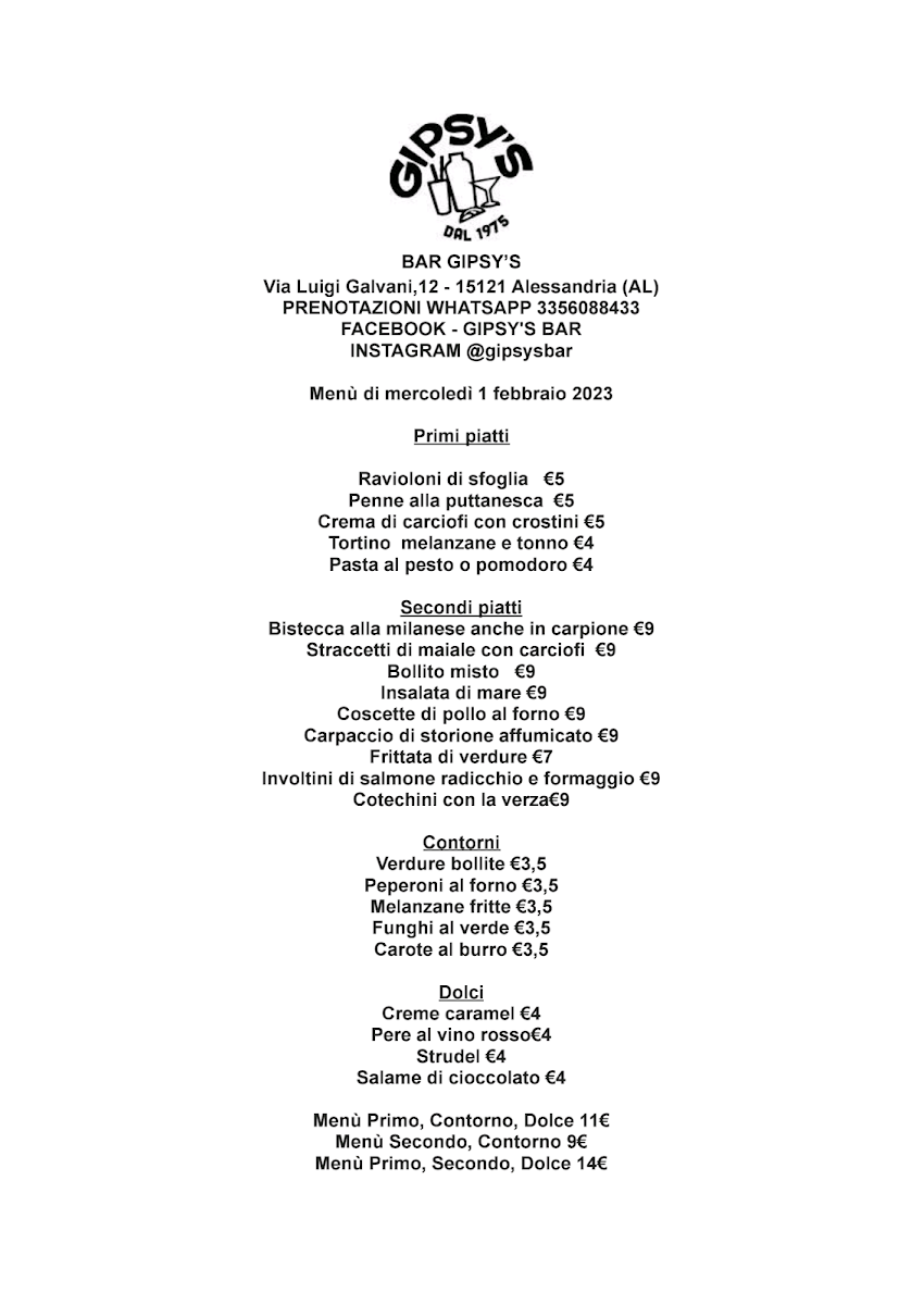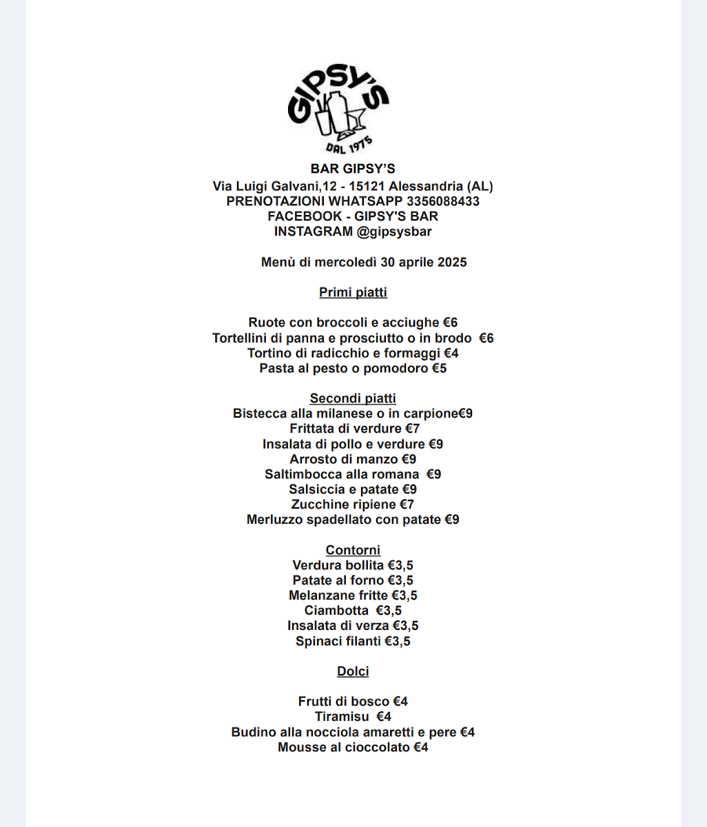If you're in Alessandria, don’t miss the opportunity to visit Bar Gipsy’s for a unique and memorable dining experience!